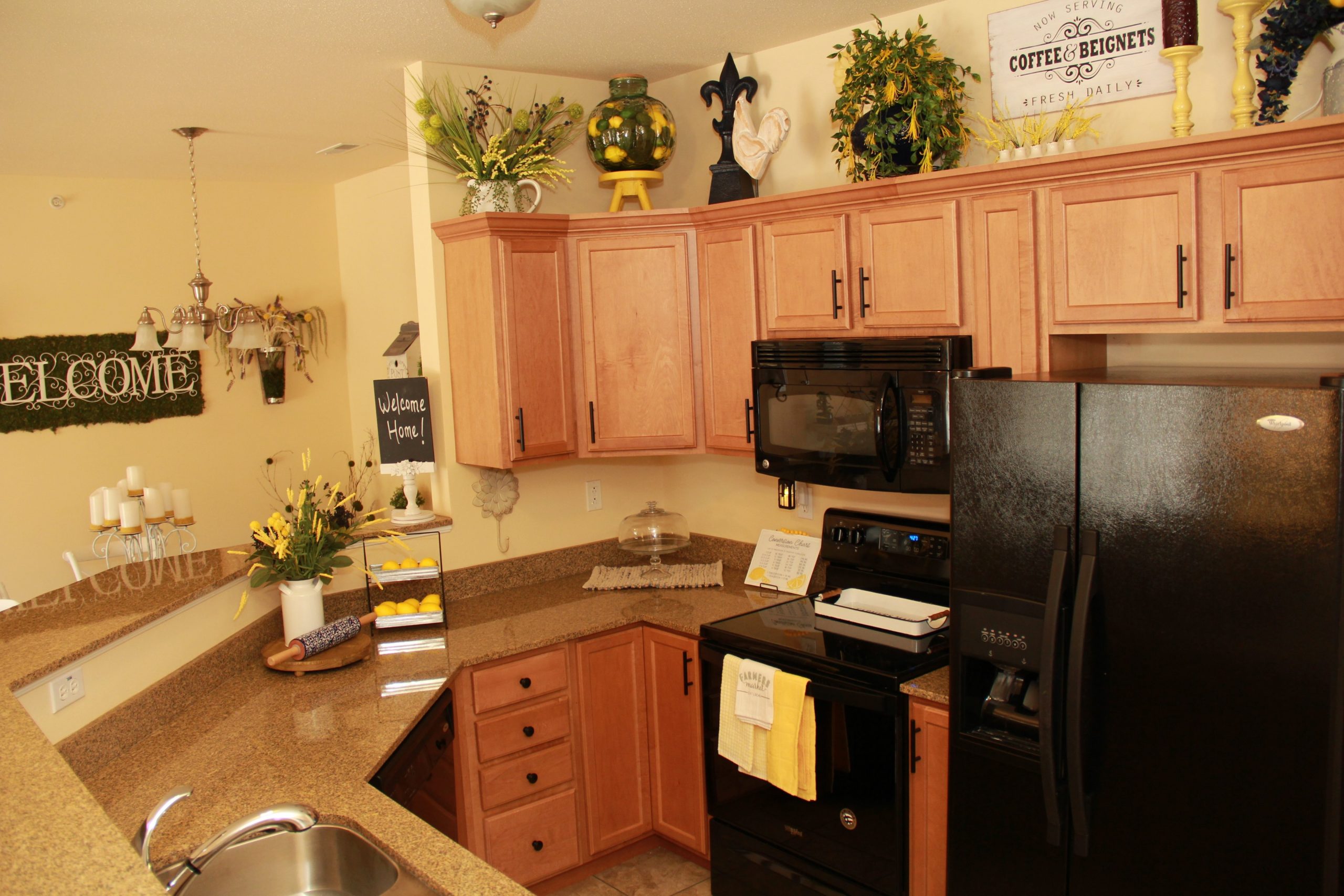 - Maple cabinetry and granite countertops